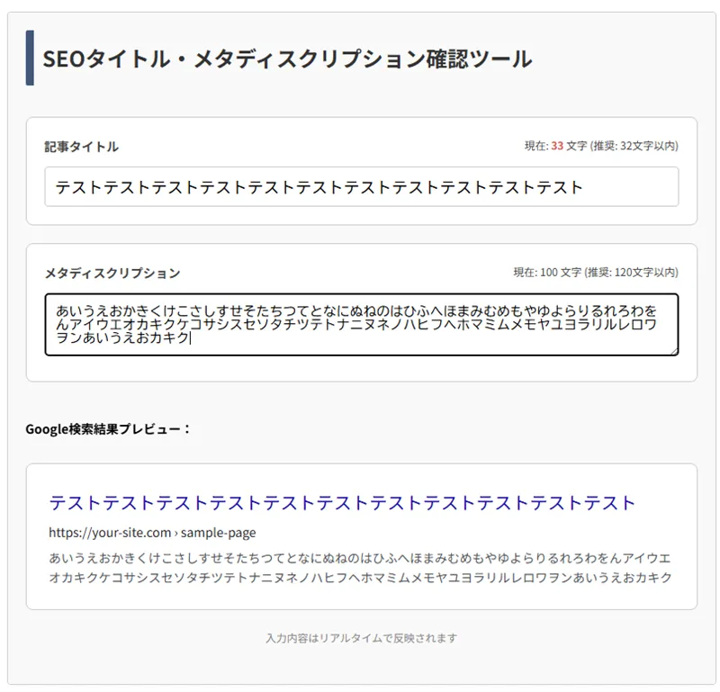 コピペと入力だけの簡単操作でSEOタイトル・メタディスクリプション確認ツール